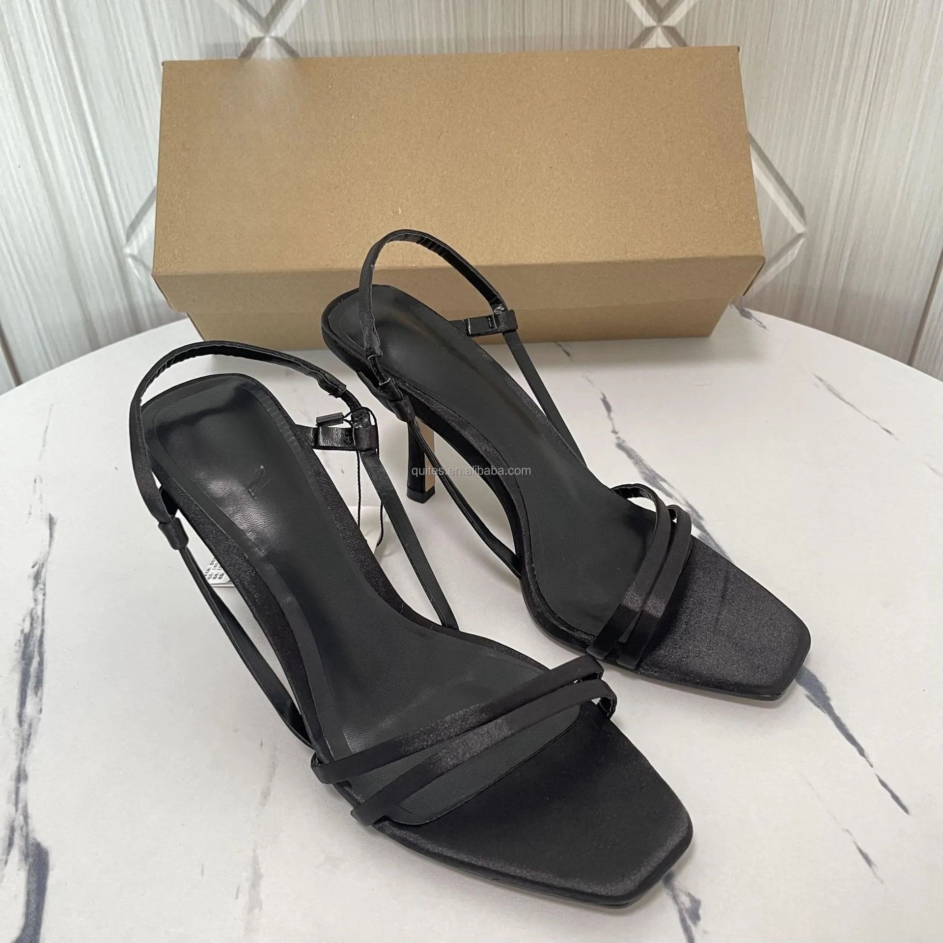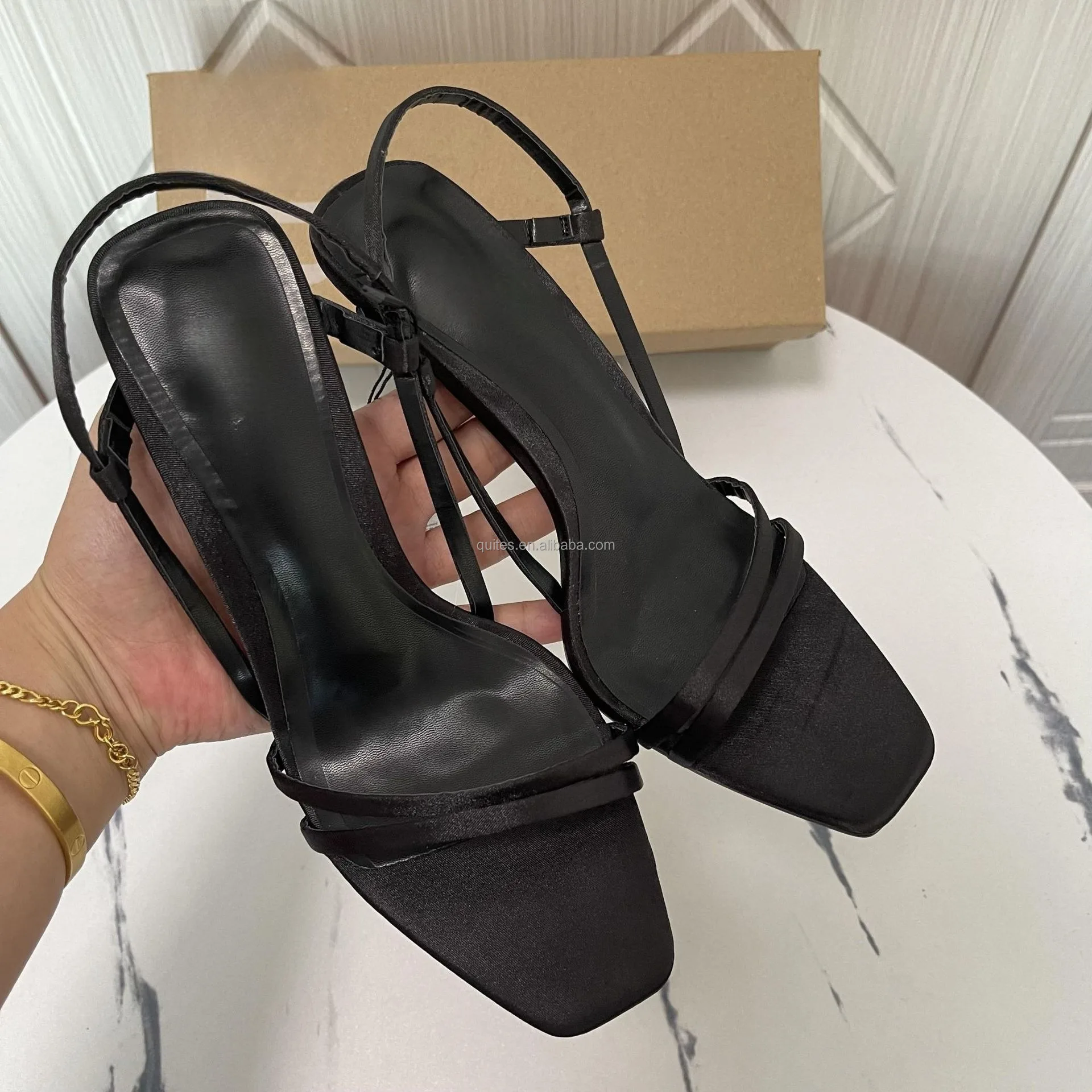 QuiteS New Square Head Open Toe Temperament French High Heels for Women Thin Heel One Line Sandals Strappy Stiletto High Heels